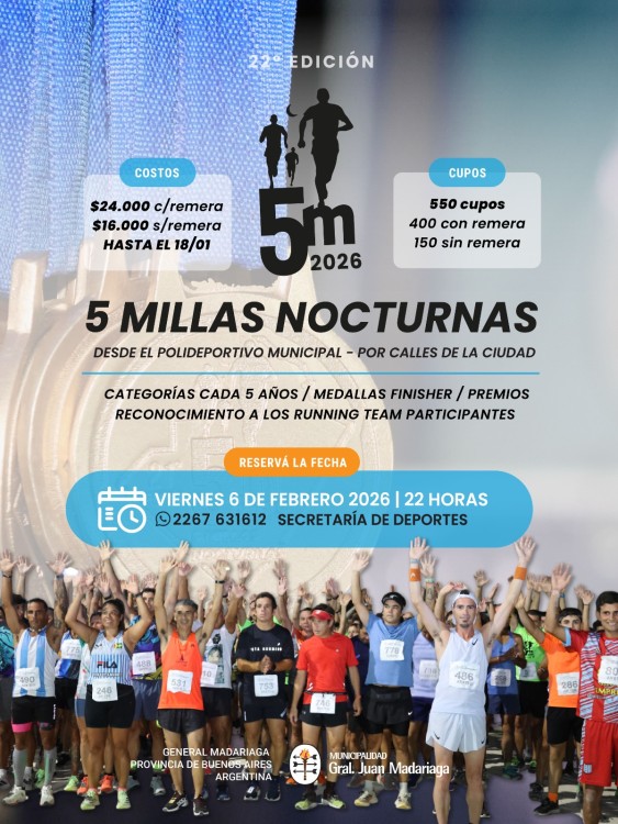 22° Edición 5 MILLAS NOCTURNAS - 6 DE FEBRERO 22 hs.
